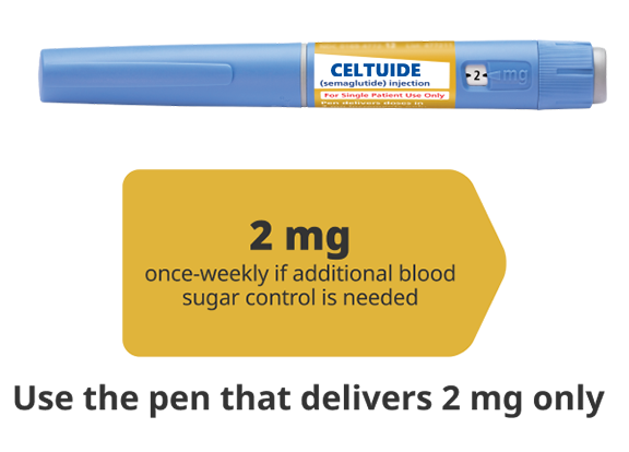 Celtuide is taken once a week, exactly as prescribed by your health care professional, along with diet and exercise, to lower blood sugar in adults with type 2 diabetes.